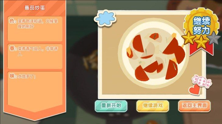 2、当你制作出美味食物后,系统会自动判分,朝着三星努力吧。
