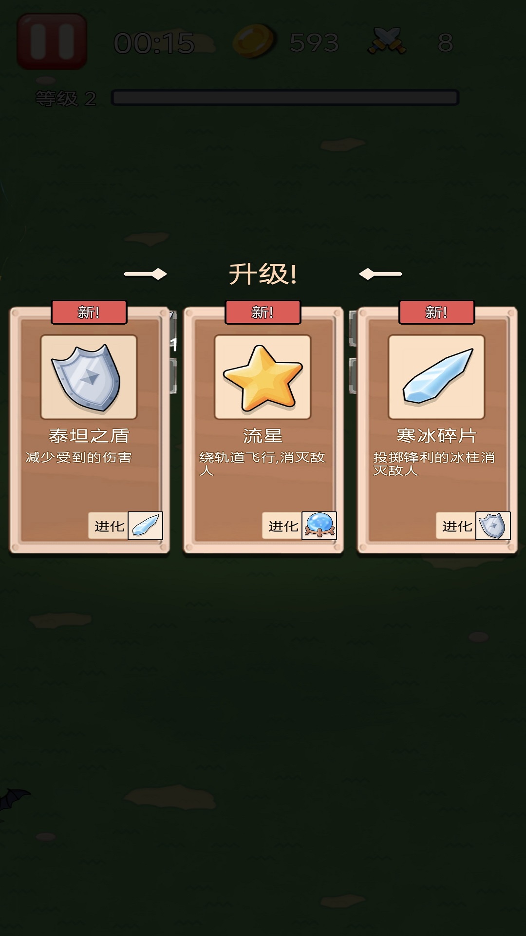 1、游戏初期建议大家先升级流星、寒冰碎片等范围技能,它们可以提升清场的效率也能快速积累能量。